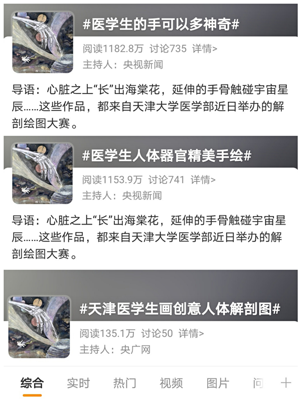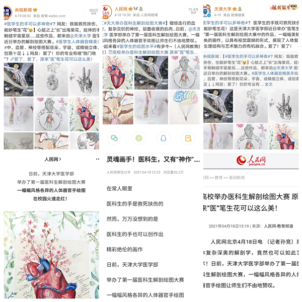 据悉,此次天津大学的参赛作品相继被人民网、央广网、央视新闻和天津大学等多家官方平台推广展示,相关话题阅读量累计突破2470万,充分展现了医学之美和医学生的风采。
