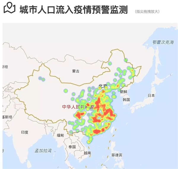 1.城市人口流动输入性疫情预警:以日为周期监测城市流入人口的数量、来源分布以及来源城市疫情状况,对各市的输入性疫情进行预测和预警;