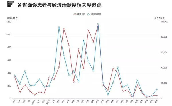 3.疫情状况与经济行为指数相关度追踪:基于政府部门发布的经济相关数据,分析经济行为与疫情的相关程度,为政府相关部门开展疫情防控工作提供科学参考数据.