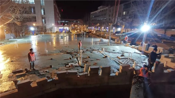 1月30日,工程启动。按照设计图纸立即进场测量、平整土地、底板施工,通宵达旦。