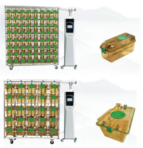 实验鼠饲养间均采用独立通气笼具(IVC,Individual Ventilated Cages),这是一种在封闭独立单元(笼盒或笼具)内送入清洁空气,并将废气集中排放的饲养和实验设备,特别适用于SPF(无特定病原体)级实验动物的饲养和实验。可有效防止不同笼盒间的交叉感染,为实验动物提供一个更加适宜的生存环境,保障实验结果的准确性和可靠性,为实验动物和科研人员提供双向保护 。