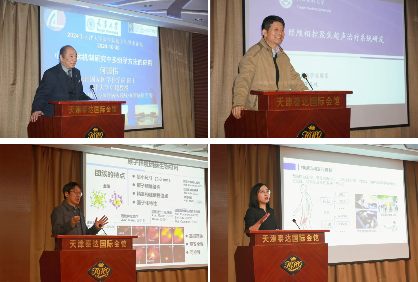 论坛特别邀请到法国国家医学科学院院士、泰达国际心血管病医院副院长何国伟,天津医科大学菅喜岐教授,天津大学医学院张晓东教授、孟琳教授,分别以《心血管病机制研究中多组学方法的应用》、《经颅相控聚焦超声治疗系统研发》、《原子精度团簇——新一代生物医学材料》和《神经运动交互下帕金森症早期诊断技术及应用》为主题为与会者带来精彩的学术报告,分享医学领域最新研究突破和未来发展方向。