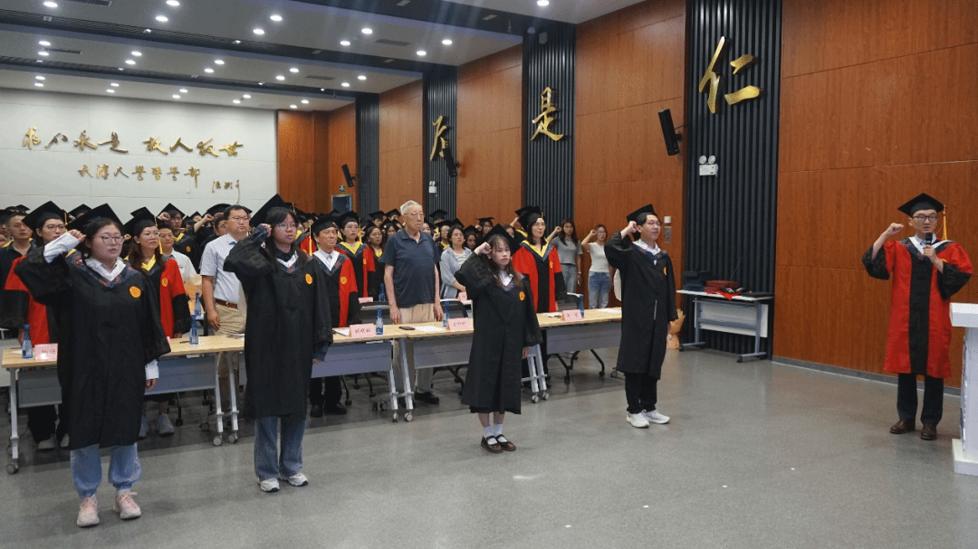 健康所系,性命相托。在庄严肃穆的气氛中,全体毕业生在临床医学院副院长田裕涛老师的领誓下,高举右拳,重温神圣的医学生誓言,“求仁求是,救人救世”的信念深深镌刻在每个人心中。