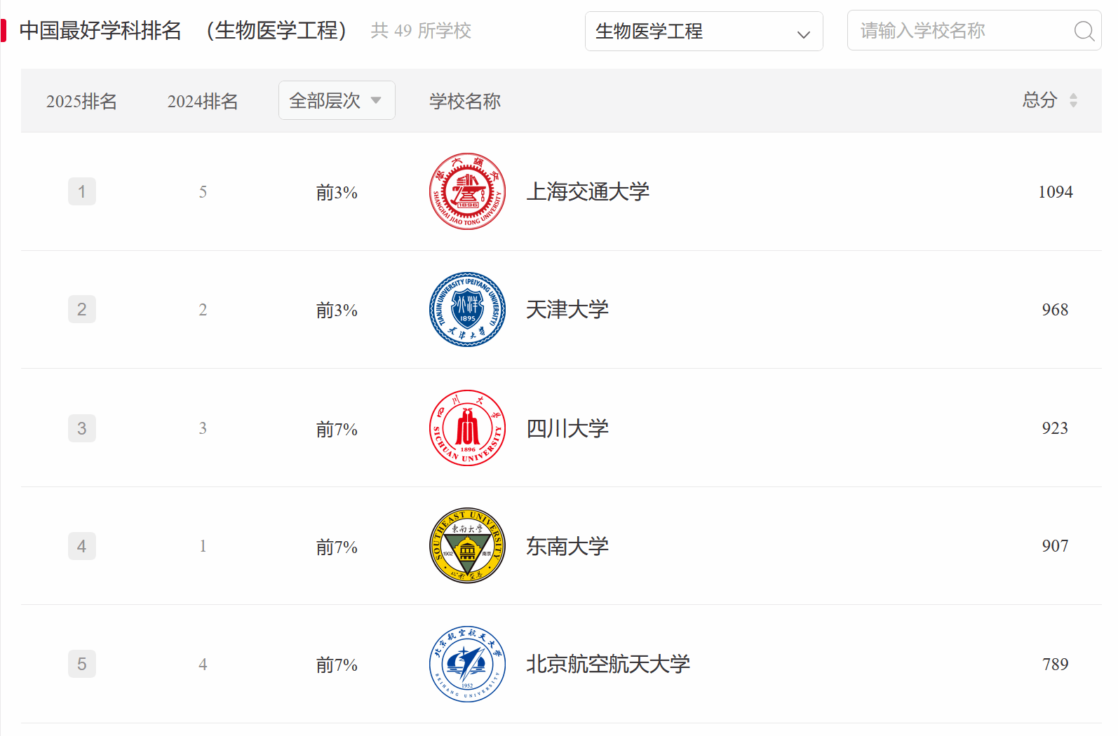 2025软科中国最好学科排名发布 天津大学生物医学工程学科蝉联“中国顶尖”