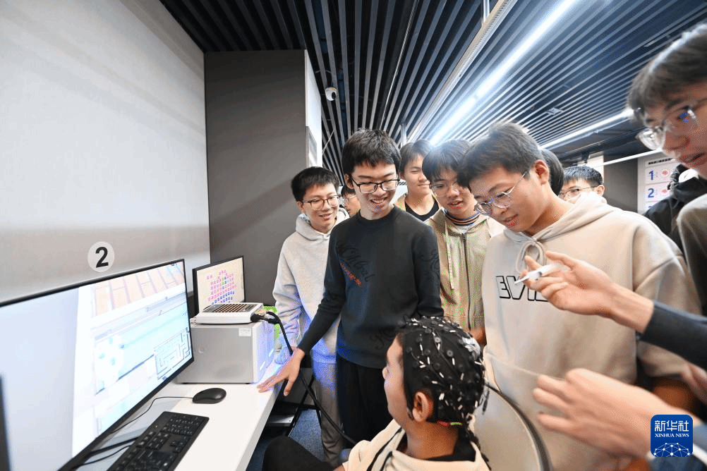 在人才培养体系的构建上,天津大学也率先开展系统性探索。2024年开创的脑机接口专业方向依托跨学科平台联合多院系授课,通过校内二次选拔的方式,已招收了两批共41名对脑机接口有浓厚兴趣和突出潜质的优秀学生。同学们在“认知增强意念小球”、“脑控机器人”等项目中,亲手搭建闭环人机系统,展现出强烈的创新思维和出色的工程实践潜力,参与特设的“脑语者”本科生研究计划项目,积累了丰富的科研经验和团队协作能力。此外,他们还自发组建“芯心念念”实践队等,积极参与各类实践项目和公益服务,将脑机技术应用于社会公益,生动诠释“智能向善、技术为民”的价值追求。