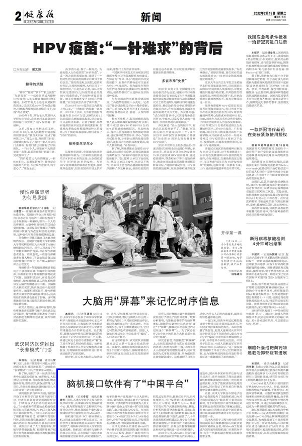 健康报:脑机接口软件有了“中国平台”