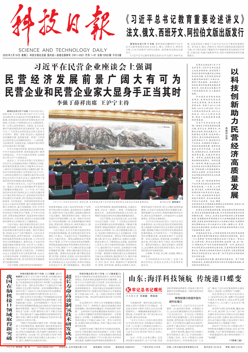 科技日报:我国在脑机接口领域取得新突破
