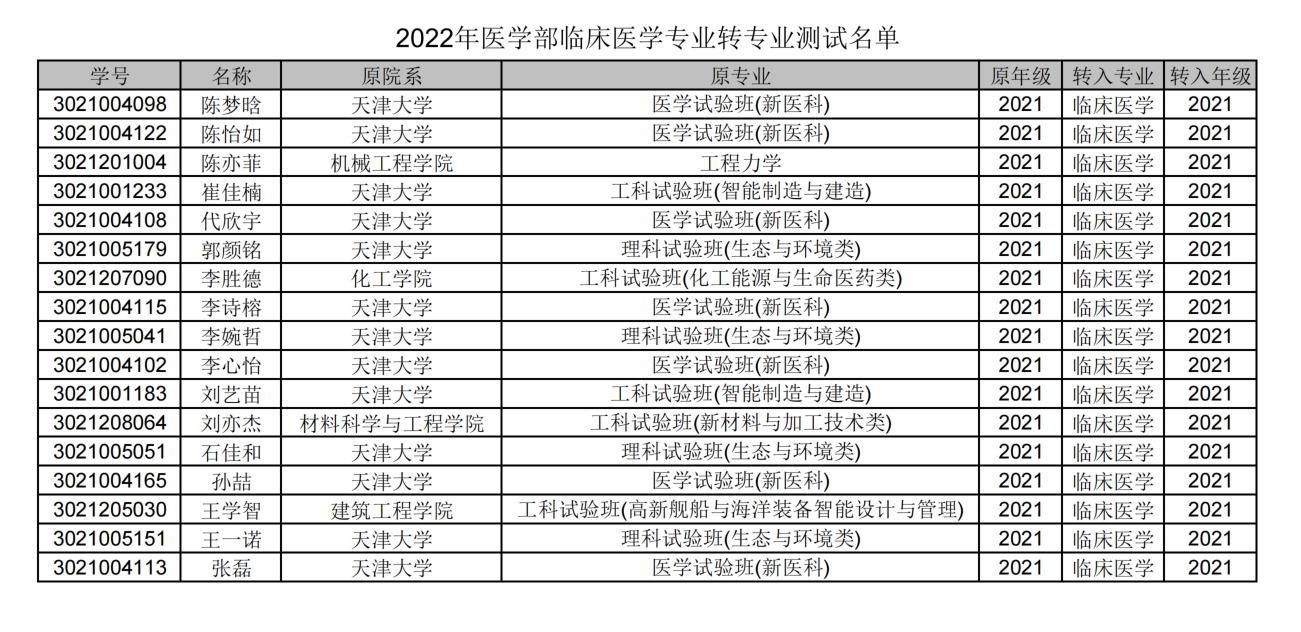 2022年医学部临床医学专业转专业面试通知