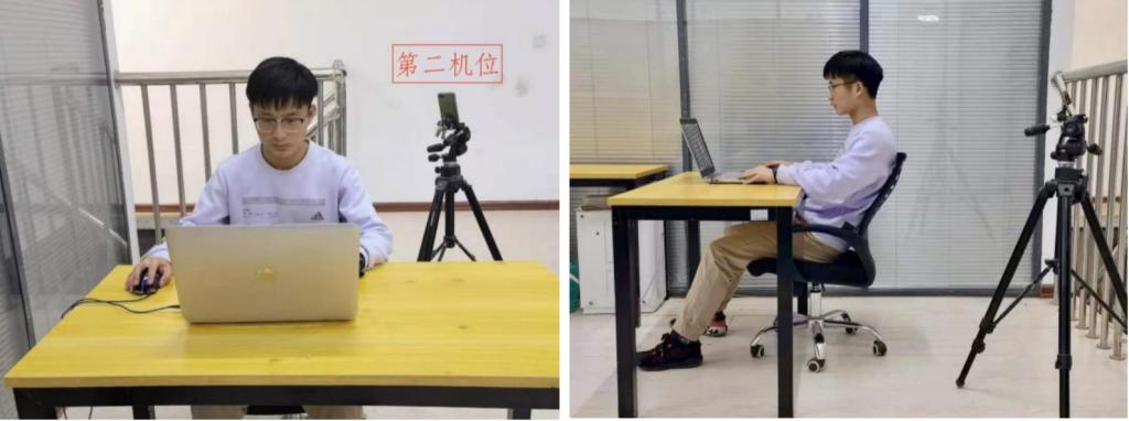 3.硬件设备:远程考核一般采用双机位。“第一机位”用于采集考生音、视频源(考生正前方),建议使用笔记本电脑或者台式机。“第二机位”用于采集考生所处的环境(考生远端,侧方或者后方),要开启静音模式,要求能够监控考生的周边情况以及“第一机位”显示器的音、视频源,建议使用手机等移动设备。第一机位和第二机位视野交叉形成360度监控视野。保证设备具摄像、话筒功能完备,保证网络环境稳定。面试期间,手机尽量使用WIFI联网,并拔除电话卡,以防面试过程中意外来电。