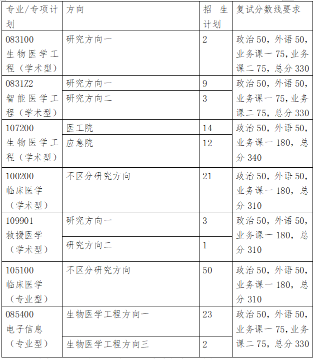 智能医学工程单独考试专项(非全日制)计划招收14人,退役士兵专项计划计划招收2人(学术型1人、专业型1人)。