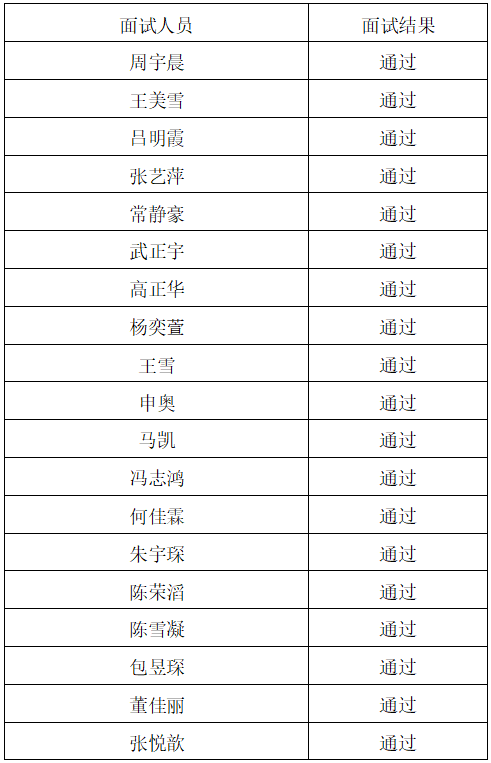 根据《天津大学医学院第一期“仁是计划”选拔通知》要求,现将选拔结果予以公示(按成绩由高到低排序,面试成绩大于80分为通过),公示期为7个工作日。