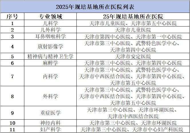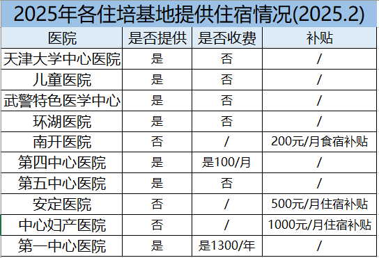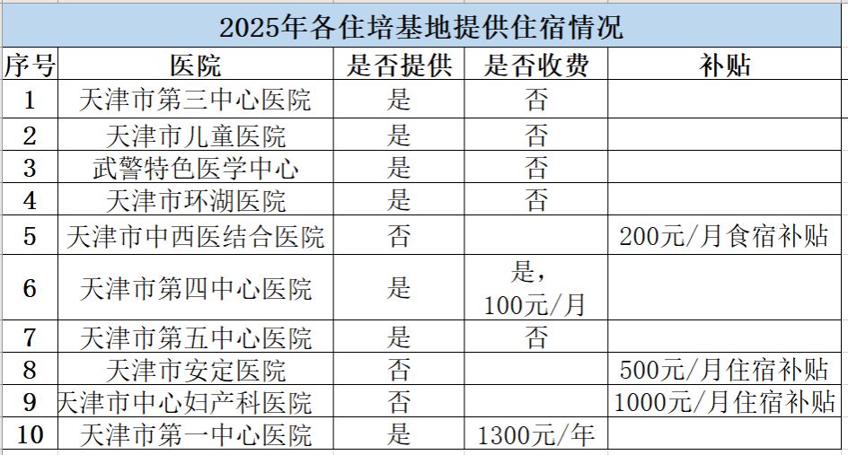 2025年规培基地与宿舍情况请参考下表。如有更新,以最新通知为准。