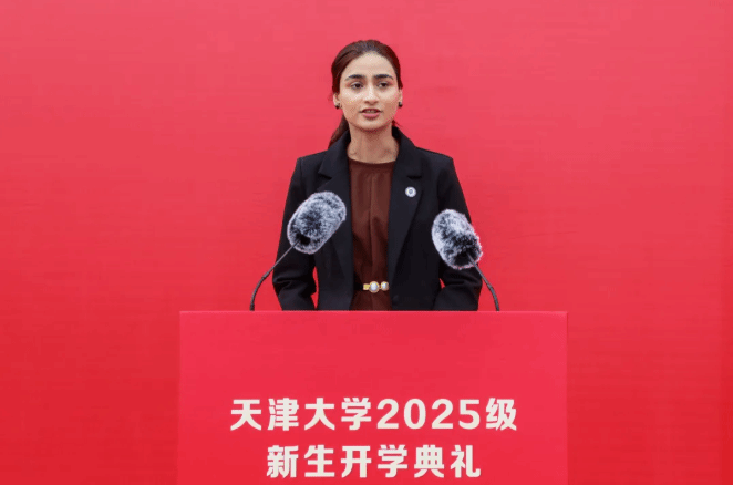医学院马思安在天津大学2025年开学典礼作为留学生代表发言